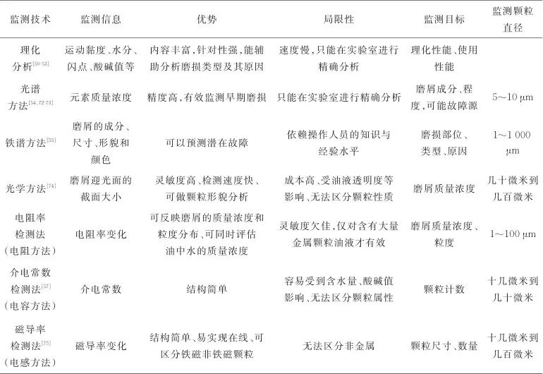 表3 潤滑油監(jiān)測各類技術(shù)比較[60?61,63,70?71]